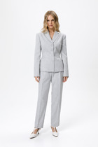 Размер 42: Жакет: ОГ-106, ОТ-104,ОБ-100, ширина плеча-12, длина рукава втачного-67, ширина рукава на уровне ОП-17, длина изделия спинки по центру-53. Топ: ОГ-94, ОТ-92, ОБ-97, ширина плеча-11. Брюки: ОТ в собр.-60, ОТ в раст.-94,ОБ-104, ширина изделия по низу-14, длина изделия по боковому шву с поясом-97.