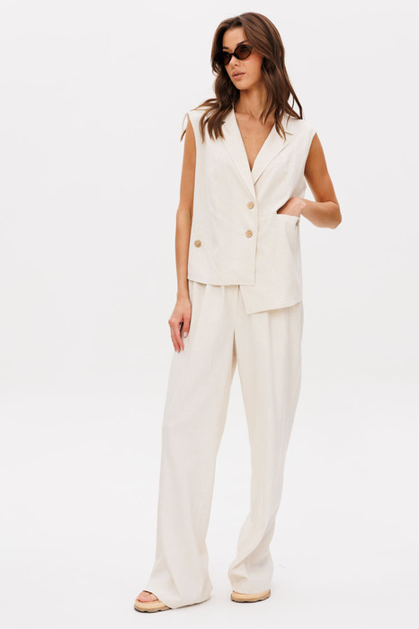 Костюм с жилетом - прекрасное решение для смелых экспериментов. Выполненный в нейтральной цветовой гамме, он позволяет дополнять себя различными аксессуарами и создавать каждый раз новые актуальные образы. Жилет прямого силуэта с центральной застёжкой и фигурным разноуровневым бортом. Спинка с декоративной разноуровневой планкой, которая имитирует застежку.