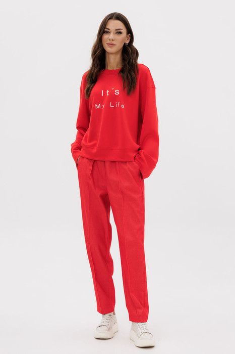 Состав: Джемпер- Вискоза-12%; ПЭ-72%; Спандекс-6%; Нейлон-10%; Брюки- ПЭ-35%; Хлопок-65%;