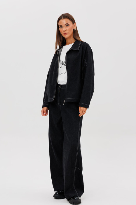 Самой практичной удобной и функциональной женской одеждой по праву считается джинсовый костюм. Этот вариант обеспечивает максимальный комфорт в носке и идеально вписывается в современный образ. Куртка джинсовая, свободного силуэта, рубашечного покроя с втачным воротником и центральной застежкой на тесьму молнию. Полочка с боковым рельефом и карманом в нем. Спинка с уентральным швом и эластичной тесьмой по низу. Рукав двухшовный, с регулирующими кнопками в области локтевого шва.
