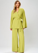 Брюки лаконичного дизайна уравновешивают верх и делают комплект универсальным. Свободный крой и мягкая посадка обеспечивают комфорт и свободу движений в течение всего дня.