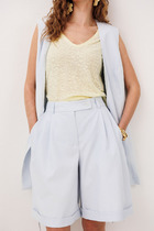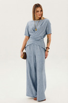 Женский брючный комплект "Магрита" выполнен из текстильной ткани "Нотус" и состоит из брюк и рубашки. Этот комплект выполнен из натуральных тканей (хлопка и льна), а также для эффекта создания легких полосочек используется во составе нейлон.