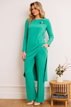 Цветовая палитра комплекта «Яника» — нежная, элегантная, с нотками благородства. Она не кричит, а говорит — тихо, уверенно, с достоинством. В этом наряде вы не просто появляетесь — вы заявляете о себе. Он подходит для торжеств, деловых встреч, светских вечеров — и в каждом случае делает вас королевой момента.