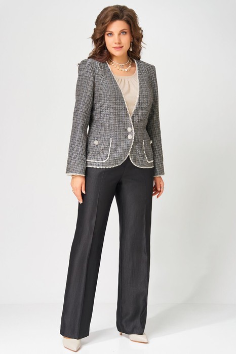 ""Ясиня"" — нарядная тройка, которая легко впишется в повседневность. Жакет, брюки и джемпер создают элегантный образ, подходящий как для торжеств, так и для рабочих будней. Стиль, комфорт и женственность — в каждой детали.