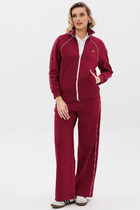 Брюки полуприлегающего силуэта с боковыми карманами и разрезами по низу бокового шва.Сверху имеется приточный пояс с резинкой по спинке и имитации гульфика.