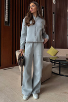 Для очаровательного образа не хватает воротничка! Воротник и застежка поло - маленькая деталь, которая «смягчает» и делает нежным весь аутфит. Брюки со стрелками добавят образу строгости и деловитости, что позволит носить костюм как на прогулки, так и в офис. Пошит из комфортной ткани - футера 3-нитки без начеса.