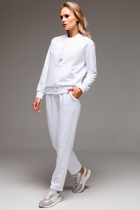 Классический женский спортивный костюм состоит из спортивного бомбер на застёжке-молнии и брюк. Всесезонная ткань сделает его любимым в Вашем гардеробе как для дома, так и улицы.