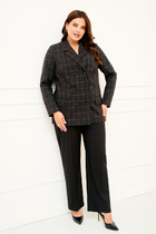 Жакет с центральной двубортной застежкой на петли и пуговицы, без воротника, с отложными лацканами. По переду с рельефами, выходящими из проймы до низа. По спинке со средним швом и рельефами, выходящими из проймы до низа. Жакет со сьемным поясом. На уровне линии талии расположены шлевки для пояса. Юбка без пояса, верхний срез обработан обтачками. Заднее полотнище со средним швом, застежкой на потайную молнию в среднем шве. Юбка силуэт- годе,с рельефными швами по переднему и заднему полотнищу.