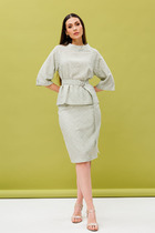 Костюм женский с брюками, футболкой и удлиненной рубашкой из шифона. Рубашка прямого силуэта со втачными рукавами и разрезами по бокам, застежка-планка на петли и пуговицы. Базовая трикотажная футболка полуприлегающего силуэта с небольшими втачными рукавами и декоративной печатью. Футболка прошла тестовую стирку при температуре 30 градусов: печать не линяет и не тяет цвет. Брюки полуприлегающего силуэта заужены к низу, притачной пояс на резинке по бокам, застежка на молнию, петлю и пуговицу, в боковых швах карманы. Уход за изделиями из шифона: