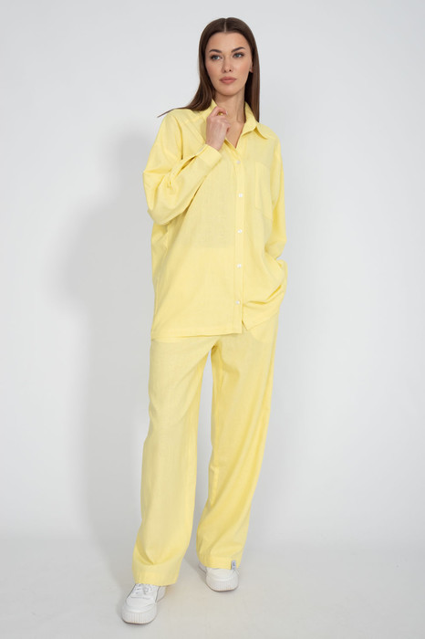 Костюм состоящий из льняной рубашки свободного кроя со спущенными рукавами и накладным карманом и брюк прямого свободного кроя. С карманами в боковых швах. Отлично сочетаются с джемпером модели 4075, шортами 4074, рубашкой 4081, джоггерами 4082. Ткань лен. Ткань лен с вискозой.