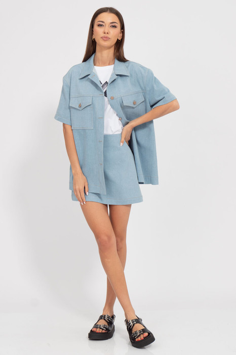 Представляем вашему вниманию стильный и универсальный костюм, состоящий из джинсовой блузы и мини-юбки. Этот комплект идеально подойдёт для создания разнообразных образов: от повседневных до нарядных. Блуза выполнена из высококачественного денима, который обеспечивает комфорт и долговечность. Она имеет свободный крой, что позволяет сочетать её с различными аксессуарами и обувью. Мини-юбка прекрасно сочетается с блузой и дополняет образ, делая его современным и актуальным.Рост 164-170