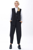 Брюки: Прямой свободный крой на резинке с карманами в боковых швах подчеркивает практичность и современный urban-стиль. Эластичный пояс обеспечивает идеальную посадку, а длинная база визуально вытягивает силуэт, сохраняя баланс между женственностью и легкостью.