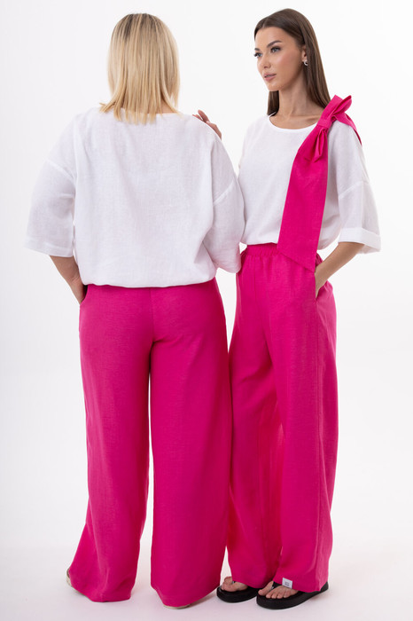 Женский костюм из льна с вискозой | Белорусский комплект: джемпер с бантом и брюки