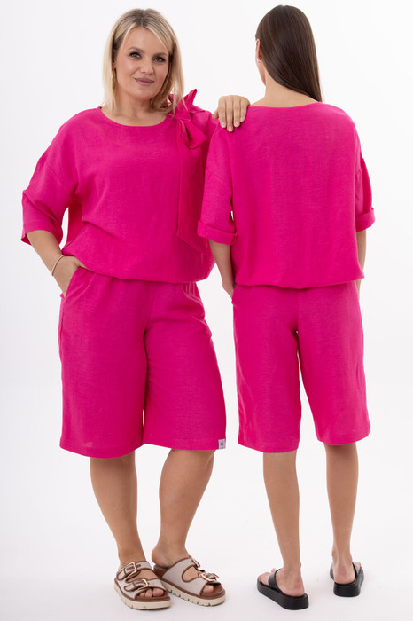 Женский костюм из льна с вискозой премиум-класса. Комплект: джемпер со съемным бантом в комплекте и шорты.