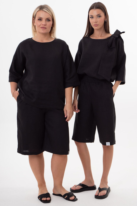 Женский костюм из льна с вискозой премиум-класса. Комплект: джемпер со съемным бантом в комплекте и шорты.