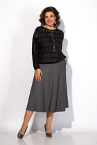 Юбка: Длинная модель с глубокими встречными складками визуально вытягивает силуэт, добавляя образу женственности и динамики. Боковые карманы в швах сохраняют практичность, а потайная молния на спинке обеспечивает аккуратную посадку без нарушения чистоты линий.