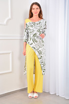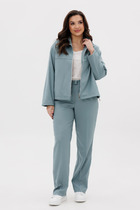 Классический льняной комплект состоящий из жакета и брюк. Жакет выполнен из льняной ткани на хлопковой подкладке, что позволит вашей коже дышать в летний период. Жакет прямого кроя, с подплечиками. Застежка центральная на 1 пуговицу. По переду расположены карманы с клапанами. Рукав двухшовный, что делает его очень удобным в носке, по низу рукава расположена шлица. По спинке расположена модная высокая шлица длиной 29 см. Длина жакета - 69 см. Брюки со складками на узком поясе, подходят всем без исключения, они удобно сидят и скрывают объем в  бедрах.Модель наделена важной особенностью – высокой линией талии, что визуально удлинит ваши ноги.  Застежка по переду на брючную молнию и пуговицу. В брюках имеются карманы с наклонным входом. Длина изделия 94 см.