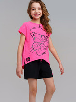 Костюм из кулирки футболка + шорты. Футболка с капюшоном, дизайн в полоску, узор в виде бантиков, отделка рукавов. Короткие шорты с аналогичным дизайном, пояс на резинке. Размеры от 26 до 36. Имеется возможность заказать данный товар по розничной цене.