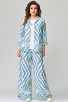Комбинированный брючный премиум комплект в стиле спорт шик для внесезонной носки. Удлиненная куртка-ветровка без подкладки, по талии с кулисой, свободного силуэта на молнии, с накладными карманами, воротник - высокая отложная стойка, по рукаву контрастная отделка и регулируемый хлястик . Спинка с кокеткой. Брюки средней посадки, заужены к низу с декоративными лампасами , без застежки , на круговой резинке по талии , с карманами в боковых швах.