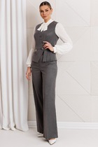 Брюки на бедрах, облегающие вверху и прямые к низу, с притачным поясом, в который вставлена эластичная тесьма. На передних половинках брюк в боковых швах обработаны наклонные карманы.                                                                                                                                    Жакет: длина рукава – 51,5см, ширина рукава – 26см, длина спинки – 75,5см.