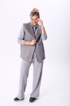 Юбка на подкладке прямого силуэта, чуть зауженная к низу. В среднем шве размещена потайная молния и открытый разрез. На линии талии размещены классические вытачки. Пояс внутренний, обтачной. Длина юбки по боковому шву 68-70 см. Высота разреза 21 см.