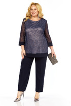 Блузон полуприлегающего силуэта с разрезами по боковым швам (по 7 см). На передней части изделия горизонтальные вытачки. В среднем шве спинки потайная застежка-молния. Горловина обработана стойкой-воронкой, высотой 4,5 см. Длина блузона по спинке от стойки 55 см. Рукав-втачной, одношовный, чуть расклешен к низу. Спереди рукава заложена открытая шлица, высотой 15,5 см, на которой расположены в качестве декора нефункциональные пуговицы. Длина рукава 41 см.