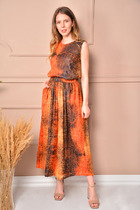 Блузон прямого силуэта. Рукав втачной одно-шовный. По переду нагрудные вытачки. По боковым швам разрезы. Брюки свободного кроя, на притачном поясе с эластичной тесьмой и шнуром из основной ткани. В боковых швах карманы “ хулиганы”.
