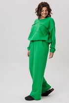 Джинсы свободного кроя с объёмом в области бёдер и ног, которые сужаются к низу что делает их более аккуратными и удобными. Джинсы на притачном поясе, от середины передних половинок и по спинке на резинке. Имеются шлёвки под ремень. Застежка спереди по типу «гульфик». По бокам большие накладные карманы. По переду джинсовые карманы с отрезным бочком.