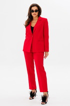 Капсульный брючный комплект с прямыми брюками и блузки подойдет для особых случаев и офисных будней. Многофункциональный комплект легко сочетать с другими вещами создавая стильные и современные образы , подходит для шпилек и обуви на плоском ходу. Стильная блузка прямого силуэта с легким приталиванием и округлым вырезом с v-образной каплей по центру, горловина и капля оформлены узкой контрастной бейкой. Низ блузки оформлен фигурной линией. Перед с нагрудными вытачками, спинка цельная. Спинка с талиевыми вытачками. Рукава втачные обработаны бейкой с разрезами и декоративными пуговками, линия плеча приспущена. Трендовые прямые брюки со стрелками и отрезным поясом на резинке must-have для современной женщины. Застежка обработана по классической технологии (гульфик с молнией и пуговица на поясе).