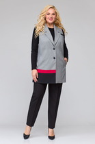 Жакет со стояче-отложным воротником пиджачного типа и центральной застёжкой на петли и пуговицы. Перед с накладными карманами в нижней части и декоративной листочкой с вышивкой в верхней части. Спинка со средним швом и талиевыми вытачками. Рукава втачные, с застёжкой на пату с пуговицей. На уровне талии съёмный пояс из ткани с вышивкой.