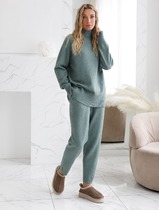 Комплект 2ка, состоящий из жилета и брюк. Жилет с отложным воротником и поясом. Перед жилета на запах с застёжкой на кнопки, на плечах декоративные паты. По бокам жилета выполнена имитация клапанов карманов. Брюки прямого силуэта на эластичной резинке по талии. По переду расположены карманы с наклонным входом.