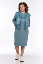 Комплект 2ка, состоящий из блузки и брюк. Удлинённая блузка с застёжкой на пуговицы,воротник рубашечного типа,рукава 3/4. В комплекте пояс из основной ткани. Зауженные брюки с подворотами по низу. Пояс на эластичной тесьме с кулисой и втянутым шнурком. Вход в карман фигурный, наклонный к боковому шву.