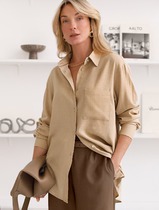Свободная удлиненная блузка с карманом изо льна с вискозой