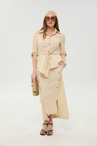 Стильный летний комплект из блузы и брюк, выполненный из ажурного трикотажного полотна в сочетании с легкой однотонной тканью. Блуза свободного кроя с центральной застежкой на молнию. Горловина обработана капюшоном. Блуза с удлиненной спинкой. Легкие и дышащие брюки-алладины свободного объемного кроя выполнены из ажурного трикотажного полотна. Дополнены притачным поясом с эластичной тесьмой. Удобные боковые карманы придают еще большего комфорта. Брюки имеют подкладку-шортики телесного цвета. Длина блузы по переду 70см, по спинке 86см. Длина рукава 35см. Длина брюк по боковому шву 96см.