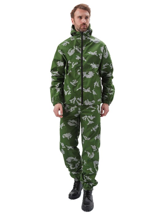 Костюм “Маскхалат” используется в качестве маскировочного костюма, состоящего из куртки и брюк.
