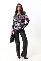 Состав: Брюки- Вискоза-23%; ПЭ-71%; Спандекс-6%; Блуза- Вискоза-5%; ПЭ-95%;