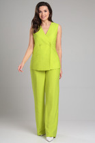 Эффектный женский комплект станет незаменимым для торжественных мероприятий и оба изделия комплекта смело могут сочетаться с другими вещами Вашего гардероба. Блуза — свободного кроя, с коротким спущенным рукавом, и ассиметричным низом, спинка длиннее переда, выполнена из летящей, струящейся ткани. В качестве дополнительного декора по переду изделия декоративная нашивка (в цвет брюк) с цепочкой. Брюки-палаццо, пояс на резинке. Длина блузки по спинке 76 см, длина рукава 34 см. Длина брюк по боковому шву 114 см, длина брюк по шаговому шву 86 см. Изделие подойдет на рост 170 см.