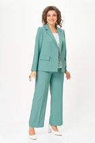 Костюм женский состоит из блузы и юбки макси на подкладке. Блуза свободного силуэта, с возможностью затянуть низ изделия. По переду застежка на молнию. Воротник стоячий-отложной. рукав цельнокроный с вертикальными рельефами по переду и на спинке. По переду - карманы. Юбка расклешенная к низу, талия на притачном поясе на резинке. По низу юбки пристрочен волан. Юбка с карманами в боковых швах.