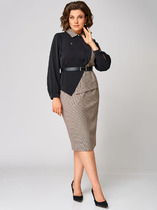 Юбка прямая на резинке и завязке, с центральным швом, заканчивающимся разрезом. Жакет и юбка отстрочена декоративной контрастной строчкой.