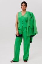 Костюм выполнен из качественной костюмной ткани, что придает изделию прочность и долговечность, а также создает элегантный и современный образ, подходящий для различных деловых мероприятий и повседневной носки.
