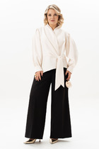 Брюки с накладными карманами в верхней части и на середине бедра.На притачном поясе со шлёвками, сзади - резинка. Застёжка на молнию. Этот костюм создан для тех, кто ценит легкость и не ограничивает себя рамками. Идеальный спутник для города, путешествий и встреч.