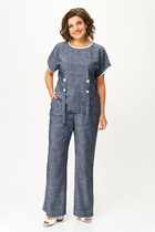 Юбка создает романтический и нарядный дуэт с топом из капсулы.  Отличным дополнением к ней является топ свободного кроя со спущенным плечом. По переду нагрудные вытачки. Вырез горловины – “каре”. Спинка с V-образным вырезом и декоративным переплетением. Низ топа с перепадом длины. Такой топ – универсальное дополнение женского гардероба.