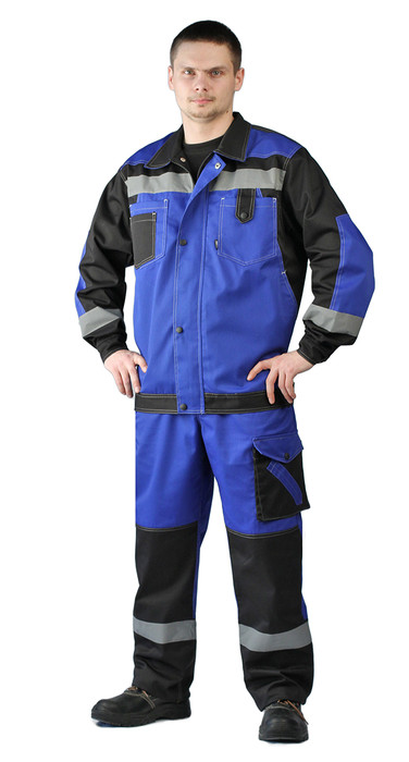 - куртка и брюки - сочетание современного дизайна и комфорта со свойственными рабочей одежде износостойкостью и практичностью - вместительные карманы с отделениями для ручек и инструментов - регулировка куртки по талии - складки на спине для свободы движения - усилительные накладки с вытачками в области локтей и коленей - световозвращающие полосы по линии груди, рукавам и низу брючин - брюки на молнии