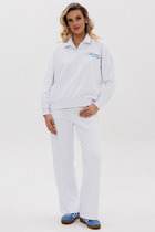 Костюм комбинированный двухпредметный: состоит из джемпера и брюки. Джемпер прямого свободного силуэта длиной до линии бедер, воротник хомут, рукав одношовный, втачной длиной до запястья. Спинка цельнокроеная. Перед состоит из двух частей- верхней и нижней. По нижней части переда сверху по центру вставка из отделочной ткани. По нижней части переда боковые накладные карманы из отделочной ткани, уходяшие в боковой шов, длинее линии низа переда вровень с линией низа спинки. Брюки с притачным поясом и с карманами в боковых швах.