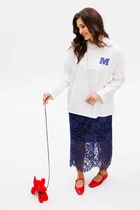 Костюм трехпредметный: состоит из верхнего и нижнего платьев, жилета. Верхнее платье макси свободного кроя прямого силуэта. Центральная застежка на петли и пуговицы. Спинка присборена в верхней части, с притачной кокеткой. Горловина оформлена воротником-стойкой. Объемный втачной рукав со спущенной проймой, присбореный по окату. По низу платья широкая отрезная оборка с густой сборкой. Нижнее платье-комбинация на регулируемых бретелях. Жилет удлиненный свободного прямого силуэта, воротник пиджачного типа. Линия низа по переду и спинке фигурная ассиметричная. Короткий рукав-крылышко. Талия фиксируется съемным ремнем из экокожи, для которого в боковых швах оформлены шлевки. Ремень идёт в комплекте к изделию.