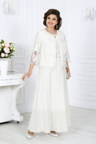 Костюм двухпредметный: состоит из жакета и брюк. Жакет рубашечного типа прямого силуэта с асимметричным низом. Рукав втачной со спущенной линией плеча, фиксируется на пату. Застежка центральная на петли и пуговицы, смещённая по косой. На левой полочке накладной карман с клапаном. Воротник отложной на стойке до половины спинки. Брюки свободного кроя из гладкой ткани сочетают элегантность и комфорт. Широкая резинка на поясе и наличие функциональных карманов подчеркивают удобство модели.
