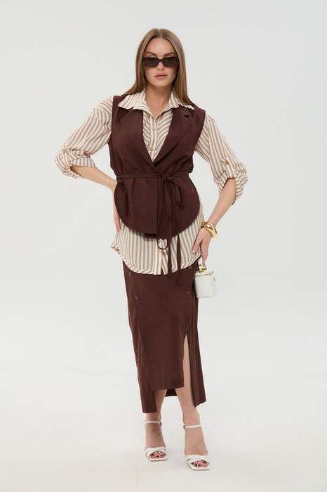 Совместные покупки Пермь Женская одежда Костюмы, комплекты — Костюм NIKVA н957-3 шоколад и песочные полосы