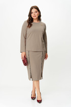 Представляем вам изысканный трех предметный костюм, который станет ярким украшением вашего гардероба на любом торжественном событии, будь то вечеринка, корпоратив, свадебное торжество или юбилей. Комплект брючный 3-х предметный, состоящий из кардигана, блузки и брюк. Кардиган выполнен из гипюра, силуэта "трапеция". Длина асимметричная: по переду короче, длиннее к середине спинки. Длина кардигана по посередине спинки 108,0 см. Линия горловины и борта оформлены отложным воротником-шалью. Рукава втачные, одношовные, длиной 59 см, по низу оформлены фестонами. Блузка выполнена из трикотажного полотна "масло", полуприлегающего силуэта, длиной по середине спинки 73.5 см. Перед с нагрудными вытачками, идущими от пройм, с настрочной кокеткой из гипюра, с фигурным низом. Спинка с талиевыми вытачками. Вырез горловины спинки и переда округлый, по переду с подрезной планкой, декорированной стразами. Рукава втачные, одношовные, длиной 27 см.