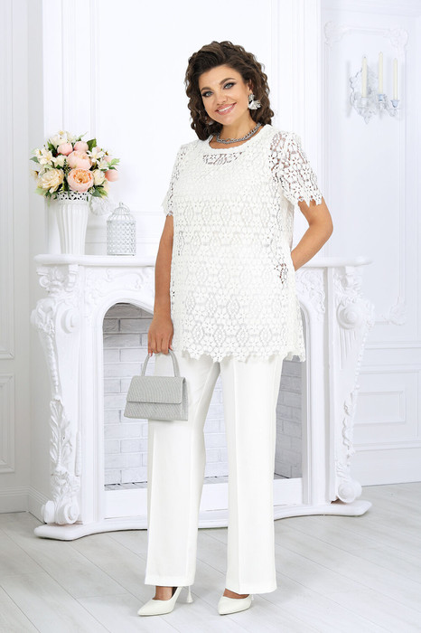 Брючный комплект тройка, сочетающий в себе элегантность, комфорт и универсальность, станет настоящей находкой для современной женщины. Состоит из хлопкового джемпера, кружевной блузки и классических брюк, что позволяет носить элементы как вместе, так и по отдельности, создавая множество стильных образов. Этот наряд идеально подойдёт для офиса, деловых встреч, праздничных мероприятий и повседневной носки. Он универсален, летний, стильный, нарядный и особенно удачен для женщин с пышными формами — подчёркивает достоинства и дарит уверенность в себе.