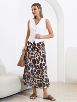 Юбка-полусолнце, с посадкой на талии, выполнена из поливискозного трикотажного полотна. Модель на трикотажной подкладке. В среднем шве заднего полотнища обработана застежка на потайную тесьму-«молнию» (20 см). Притачной пояс застегивается по спинке на 1 петлю и 1 пуговицу; для лучшего прилегания по линии талии предусмотрена эластичная лента, вставленная в пояс над боковыми швами. Длина по боковому (с поясом) - 95 см.